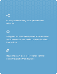 17% KOH pH Up is a concentrated potassium hydroxide solution, formulated specifically for compatibility with HGV Nutrients.
